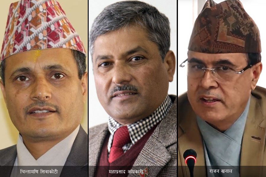 सिफारिसमा परेका तीनैजना बलिया दाबेदार हुन् । यस अघि तत्कालीन प्रधानमन्त्री सुशील कोइराला नेतृत्वको सरकारमा अर्थमन्त्री डा. रामशरण महतले ३ जनाको नाम सिफारिस गरेका थिए । जसमा दुईजना डेपुटी गभर्नरद्वय महाप्रसाद अधिकारी र महेश काफ्ले परेका थिए । अर्का व्यक्ति भने कोइरालाकै तत्कालीन आर्थिक सल्लाहकार डा. चिरञ्जीवि नेपाल थिए । दुईजना कमजोर दाबेदार भएका कारण नेपाल गभर्नर हुन्छन् भन्ने नियुक्तिअगावै चर्चा चलेको थियो ।